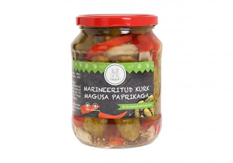 Koostisosad: kurgid, vesi, punane paprija, sibul, äädikas, küüslauk, till, sinepiseemned, suhkur, sool, loorberileht, vürtsid, must pipar Kaal: 720g/neto 360g Toitumisalane teave: 100 g tootes energiasisaldus 23 kcal/99kj; rasvasisaldus 0,1g; millest küllastunud rasvhappeid…